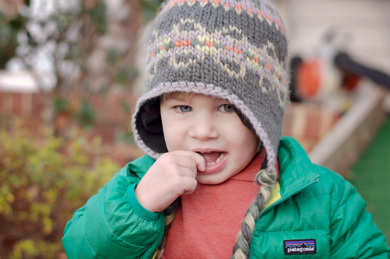 Next weekend we head to the mountains to get our Christmas tree – I can’t wait – in the the meantime, I am stock piling hats and scarves and gloves. I tried Connor’s lined knit hat out on him today – doesn’t he look adorable?