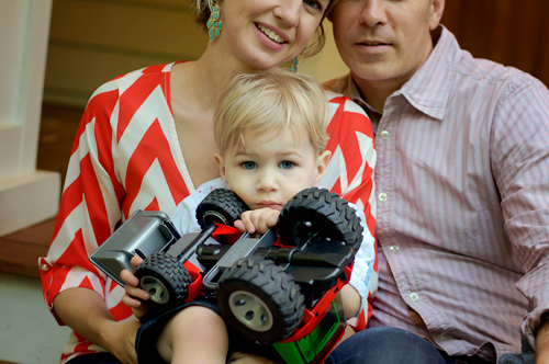 I tried all day to get a picture of Connor in his cutie patootie getup – and I almost failed. Finally, with a water bottle or hose or truck in hand (which I cropped out :)) he seemed willing to look at the camera, and that was better than nothing – even if he didn’t crack a smile.