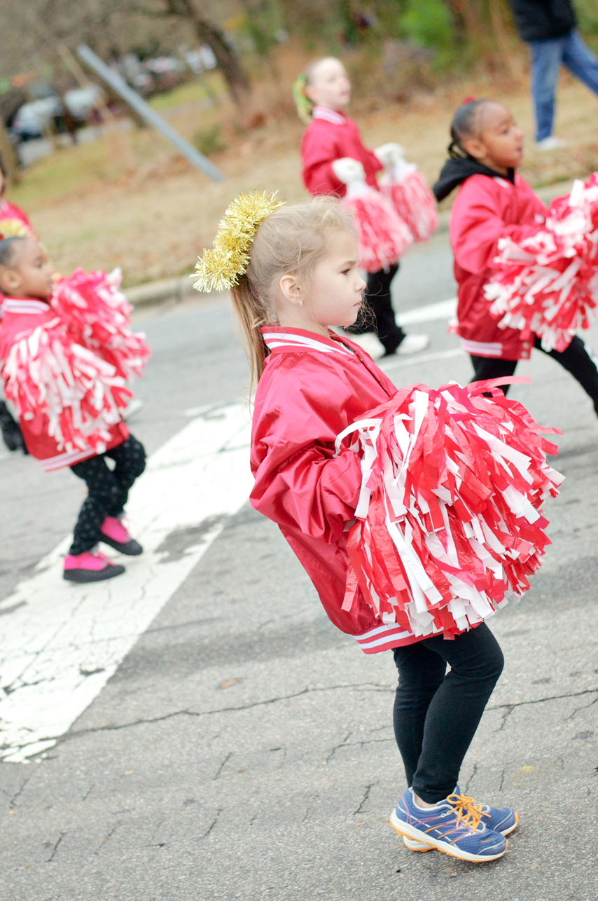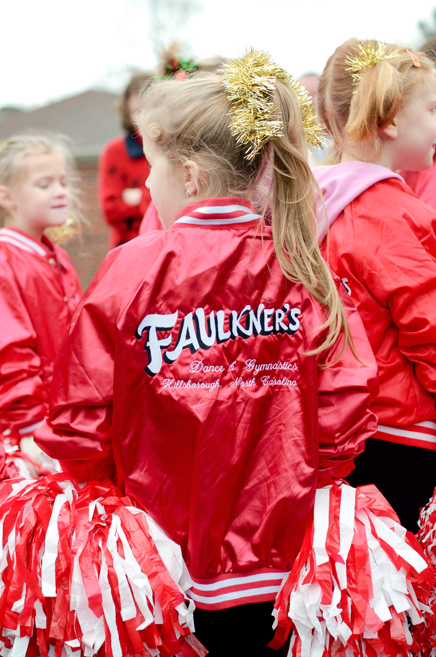 So this was Cailee’s first year participating in the local parades with her dance troop. She marched/danced in two, the Mebane parade (Friday night) and Hillsborough parade (Saturday morning). They were two completely different experiences – Mebane was warm, nearly 60 degrees but we had to wait FOREVER. We were told to arrive an hour before the parade and then didn’t join the parade until an hour after it started. Cailee was really restless but she did really well. Saturday morning was COOOLD, but lucky for us here dance group was at the start of the parade so we didn’t have to wait too long. I didn’t dress her warm enough and the poor girl was frozen and thus did her best to just get from start to finish – we didn’t get a whole lot of other movement out of her. Even still she said she a had a lot of fun and is looking forward to next year’s parades. It was a great start to the holiday season.